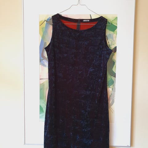 Meget pæn velourkjole, der går næsten helt ned til gulvet. Med krave, korte ærmer og lynlås bagerst.