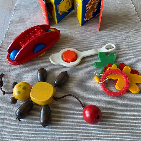 LEGO børn legetøj bestående af forskellige legetøjsfigurer og tilbehør. Indeholder også børnebøger og trælegetøj med forskellige motiver og farver. Egnet til børn.