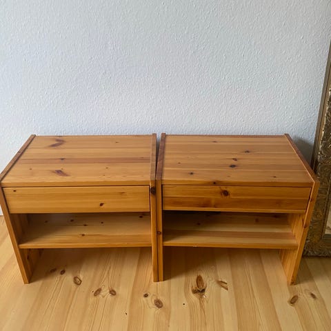 Flotte borde som kan bruges som sengeborde, sideborde, natborde, sofaborde. Funktionel, men trænger til at blive malet.