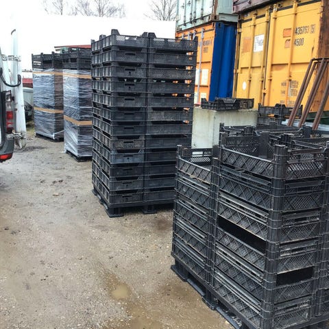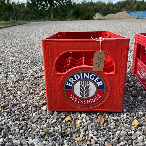 Carlsberg ølkasse i rød plastmateriale. Designet til opbevaring og transport af ølflasker. Robust og genanvendelig.