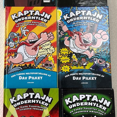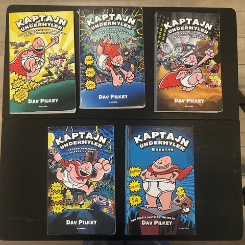 Dav Pilkey Kaptajn Underhyler børnebog- serie med farverige illustrationer og humoristisk fortælling.