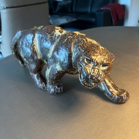 Stentøj fra Royal Copenhagen - Kronhjort ikke 1. sortering model nr. 21333. L:28 cm, H: 38 cm, B:10 cm. Kunstner Knud Kyhn. Fra et ikke ryger hjem