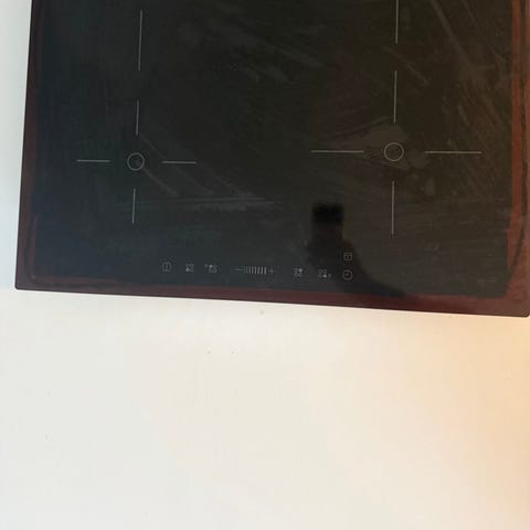 Whirlpool induktionskogeplade med sort overflade og touch-kontrolpanel. Designet til effektiv og præcis madlavning ved brug af induktionsteknologi.