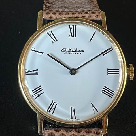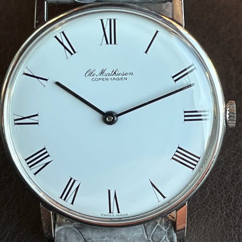 Flot Ole Mathiesen ur. 33 mm mekanisk ur fra midttresserne med manuelt optræk.