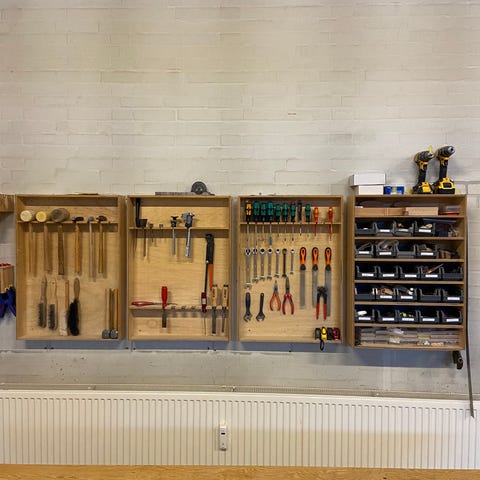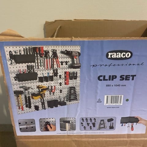 Metal værktøjstavle med målene 200 cm i længden og 90 cm i bredden. Tavlen er grå og har firkantede huller til ophængning af værktøj og tilbehør. Velegnet til opbevaring og organisering i værksted eller garage, der medfølger en del beslag.