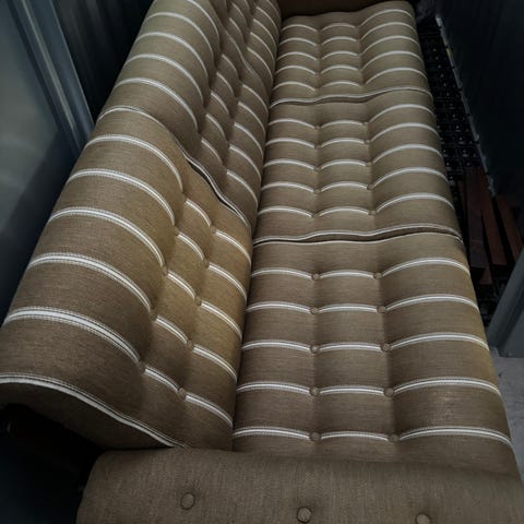Grå sofa fra Fledelius møbler. Nypris 7.000 kr. med armlæn og løse hynder . Fra hjem uden husdyr. Sofaen har et enkelt og funktionelt design, passende til forskellige rum og indretninger.