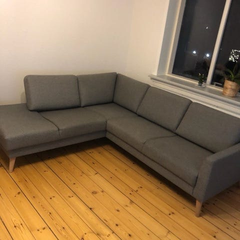 Hjørne sofa med stol og sofabordet