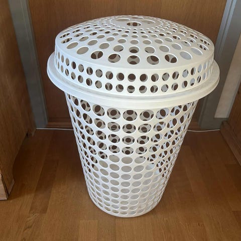 Sæt med to plastik vasketøjskurve i grå farve. Kurvene har et åbent gitterdesign, som sikrer god ventilation. De er rektangulære og har håndtag til nem transport. Velegnet til opbevaring af vasketøj.