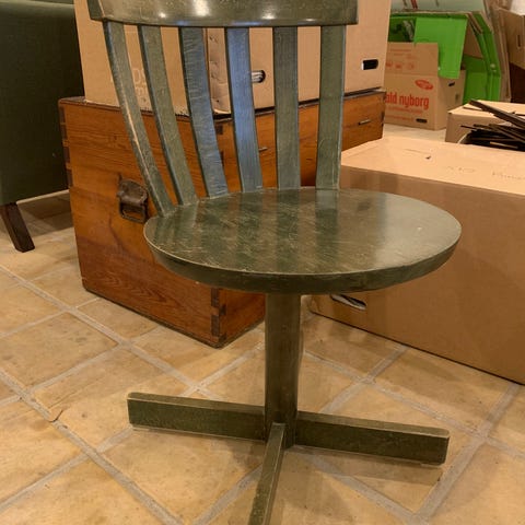 1 stk Rén dining armchair - spisebordsstol ude armlæn. Udformet i onyx bejdset eg med messingdetaljer og sort læderhynde. Brugt meget sparsomt - da den blot er blevet benyttet som ekstra stol. Se billede 2 hvor den står ved siden af en sort bejdset. De kan sagtens stå ved siden af hinanden farvemæssigt.