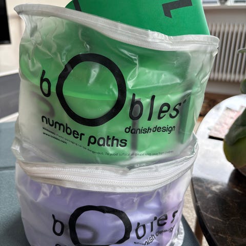 Meget fint sæt fra bObles med klodser med tal. Tumletal. Hver stribe svarer til en, så 7 klodsen har 7 striber.