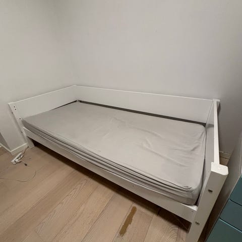 Sengen har målene 90 x 200, og kan skilles ad, så den er lettere at transportere.
