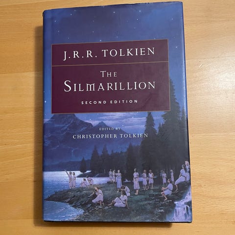 J.R.R. Tolkien Silmarillion bog med illustrationer af Ted Nasmith. Indeholder forord og uddrag om Tolkiens værker og illustrationer, der skildrer scener fra bogen. Teksten er på dansk og beskriver Tolkiens liv og arbejde, samt baggrunden for Silmarillion.