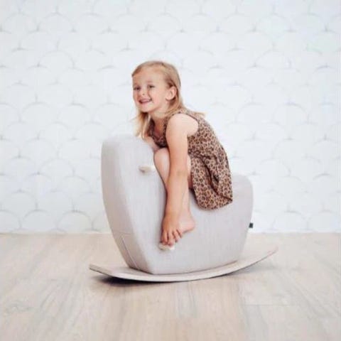 Hvem siger at en gyngehest skal ligne en rigtig hest en til en? Ikke Ooh Noo, der har designet en smuk, enkel og stilren variant af den ellers klassiske gyngehest. Bunden består af en træplade, der gør den meget stabil og "vælte-sikker". Selve hesten er lavet i skum med metalskelet. Skummet er herefter betrukket med hør, så den er rar at røre ved og sidde på. Håndtag og fodstøtter er i træ ligesom bunden af gyngehesten. Gyngehesten har vundet den eftertragtede reddot award. Her er den i en mint variant, der passer til et mindre barn på mellem halvanden og fire år og med en vægt på op til 40 kilo.