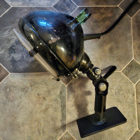 Lampen har et par store “ører” / håndtag og kan indstilles i forskellige positioner