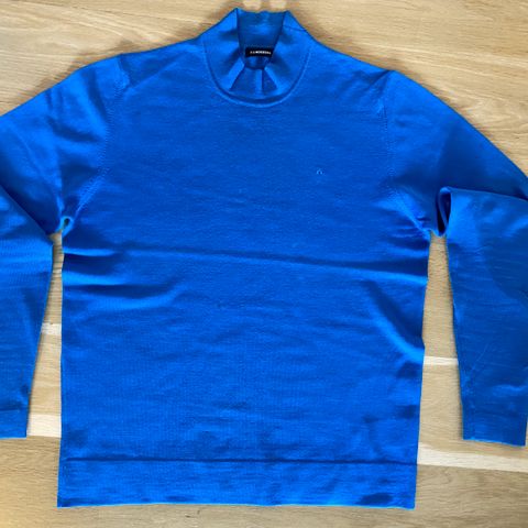 Lækker og stilet uldvest fra J. Lindeberg i 100% fin merino. Brugt ganske få gange og fremstår som ny på nær et lille hul i nakken, se fotos (rød cirkel). Fra ikke-ryger hjem.