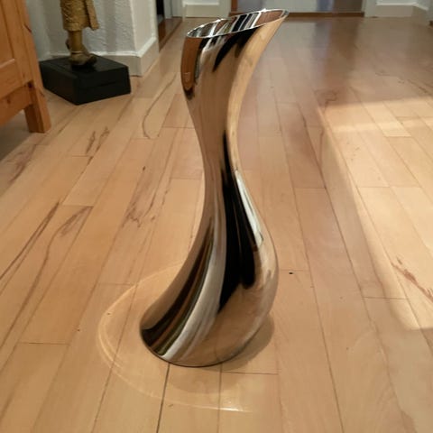 Den praktiske letvægtskande er udført i glaspoleret rustfrit stål og rummer 1,2 liter. Kan også bruges som vase.