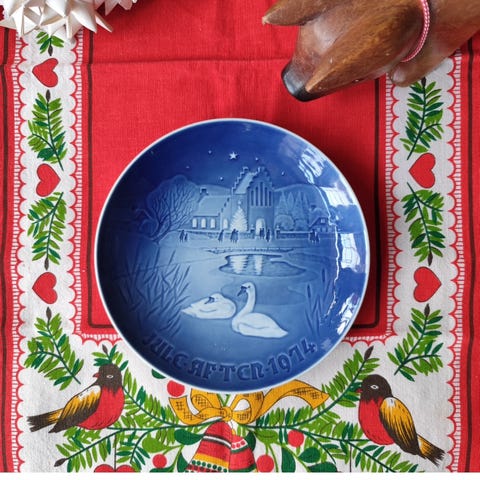 Juleplatte fra Bing og Grøndahl. Juleplatte 1968. Den er lidt dybere end dem fra Royal Copenhagen men passer stadig til både morgenmad, frokost, kage og dessert. Og de kan sagtens blandes da de har samme blå glasur og samme diameter. Ø18 cm. Du kan loppesjoppe den for 75 kr.