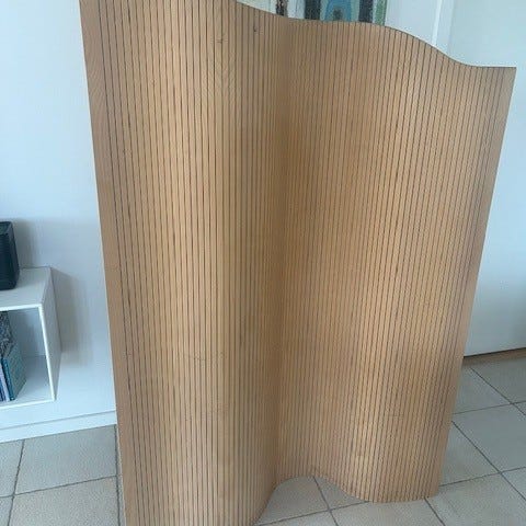 Smuk organisk, skulpturel og dekorativ foldevæg i lameller.