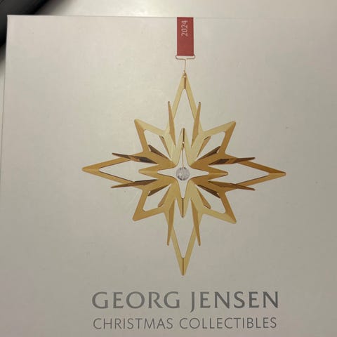 Georg Jensen Christmas Collectible Juleuro. Fremstillet i metal med en stjerneformet design og inkluderer en rød bånd med årstal. Leveres i original æske. Egnet som julepynt.