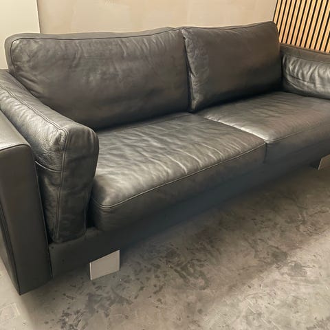 Sofagruppe, læder, Skalma, Lædersofaer, 3 + 2½, sæderne med koldskum og ryglæn med dunfyld. Længde 230 cm og 200 cm, dybde 80 cm. (Sælges uden pyntepuder) Pæne og velholdte. Købt i Hansen Møbler (Ny pris 15.000) Sælges samlet for: