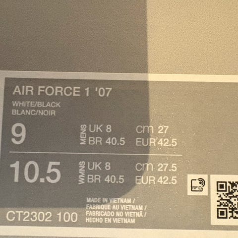 Sælger et par Nike Air Force 1 ’07 i sort, størrelse EU 45.5. Skoene er helt nye og ubrugte, aldrig taget i brug.