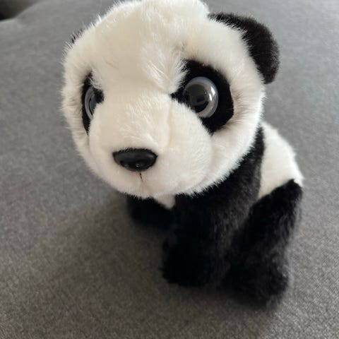 Plys pandabjørn bamse i sort og hvid farve. Blødt materiale, velegnet som dekorativt legetøj eller krammedyr.