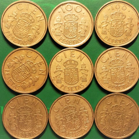 SPANIEN SPAIN ESPANA SUPERFLOT UNC. 500 PESETAS 1989 JUAN CARLOS I Stor mønt! Har også brugt 500 Pesetas 1989 til 10kr. Foto 5 & 6. 500 Pesetas 1987 - 1900 Juan Carlos I Aluminium-bronze • 12 g • ø 28 mm KM# 831