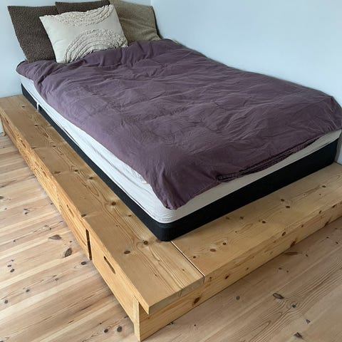Flot Ethnicraft seng af massivt teaktræ, to boxmadrasser af høj kvalitet, 60 mm latex dobbelt topmadras. Købt i 2018 til 24.000- fra BoShop