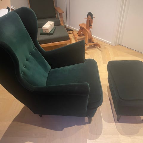 Sælge denne lænestol med puf/skammel. Den er renset men ser selvfølgelig ikke af ny. Har dog stadig en god farvegengivelse.