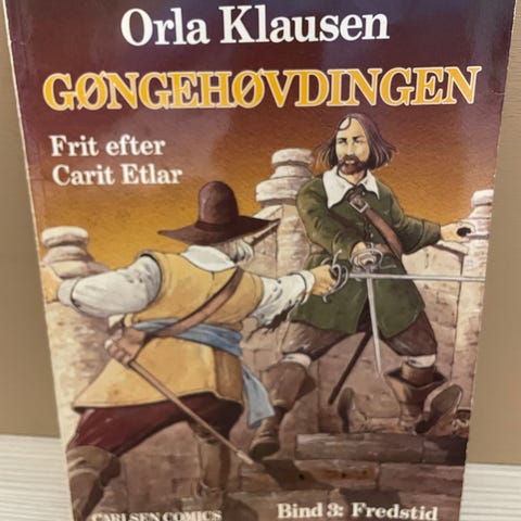 Orla Klausen Gøngehøvdingen bog bind 5, frit efter Carit Etlar. Udgivet af Carlsen Forlag, indeholder fortællingen om Gøngehøvdingen med illustrationer på forsiden.