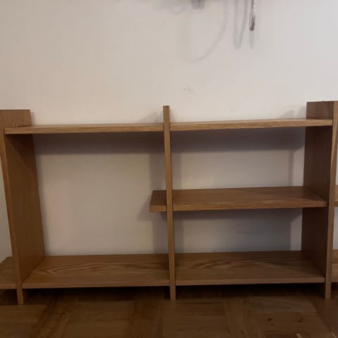 Helt ny reol fra Søstrene Grene i mdf og ægte egetræsfiner. Rigtigt fin til køkken med kopper eller til bøger, nips osv.