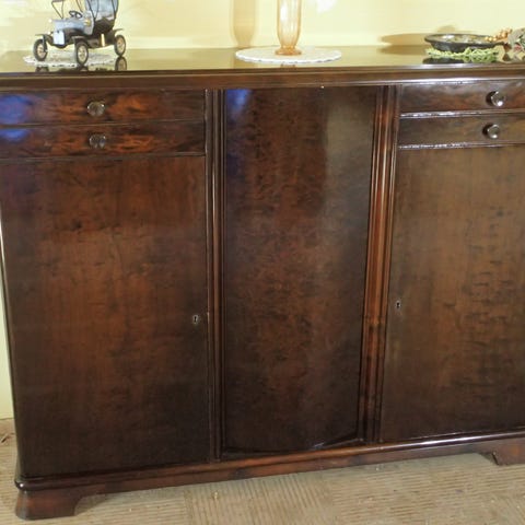 Afsyret egetræs Dækketøjsskab / skænk 208 x 50 cm og 122 cm høj.