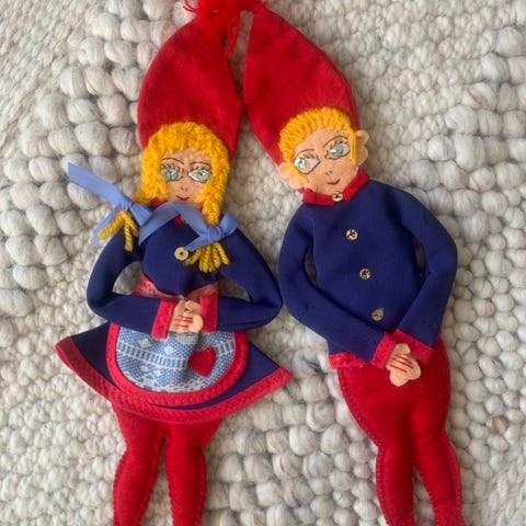Jul, julepynt, julemand, nisse, blå, rød, indretning, broderi, håndlavet