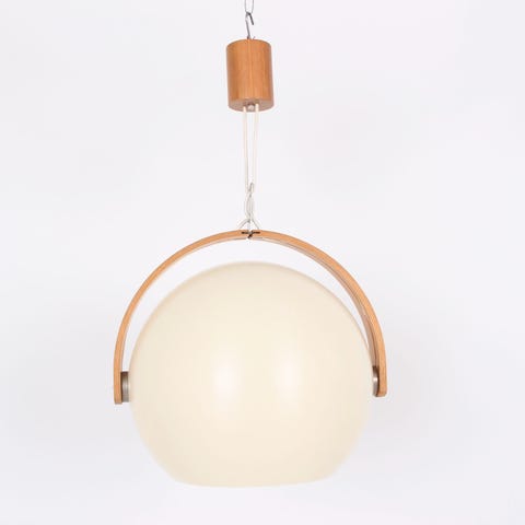 Model 324. Height adjustable teak and sisal cord hanging lamp pendant from Temde Leuchten Schweiz. 1950/60er. Danish boho japandi style. Diameter ca. 35 cm. Højde på skærm ca. 27 cm. Ledning kan justeres, sidder på en tromle og kan blive 1,5 meter lang. Skærmen har patina se venligst billederne. Bud modtages gerne. Kan afhentes på Langelandsgade. 8000 Århus c. Reservere Ikke betalt venligst et depositum.