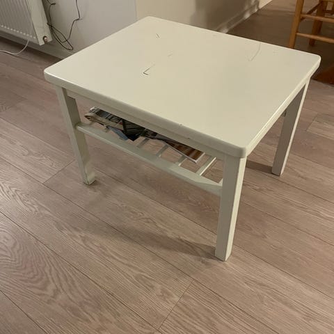 Lille sofabord i massiv træ, kan slibes og males 93 x 48 cm og 49 cm høj.