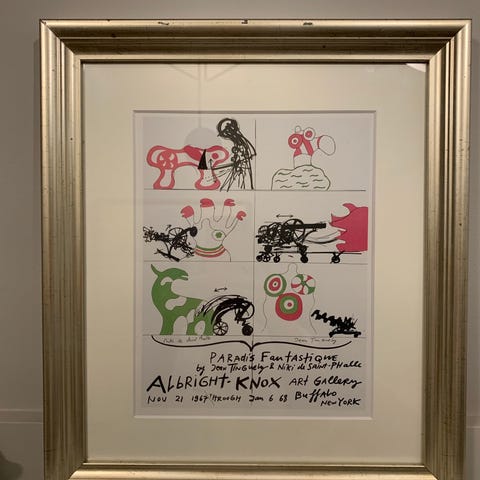 Skønt lille Niki de Saint Phalle tryk i flotte farver. Sat i flot sølvramme med gulddetaljer i hvid passepartout