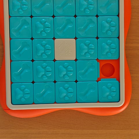 Se her hvem kan bruge denne sjove aktivitetslegetøj til deres hund. Den kun brugt lidt, hunden skal trykke toppen og så falder pillerne ned i lågerne. Sælges for kun