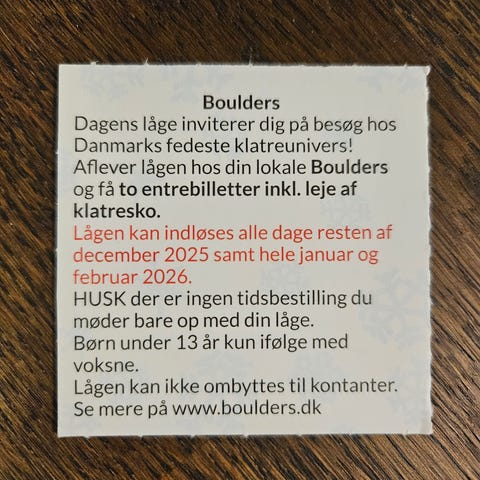 VÆRDI: 394 kr. Gavekort til Boulders. Klatring.
