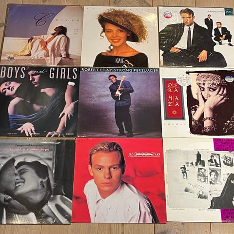 Vinylplader med forskellige kunstnere og album. Fine, men brugte eksemplarer med alm. tidstypiske brugsspor.