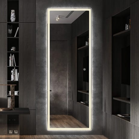 Nyt Badeværelse spejl med lys, dæmpbar, touch, 80x70 cm, sort