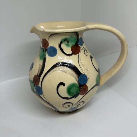En meget smuk gl. Kahler kande, udført i kohorns-glasur og i et smuk farvespil.