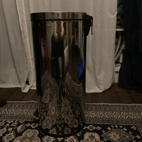 Pedal Skraldespand med låg, godt stand fejler intet hverken, brugte få gang, fungere optimal, - Grønt / hvid plastik spand str., H. 22 x 20 cm. i diameter, stå ikke hvor mange liter. kan hentes for 25 kr.