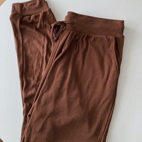 GUESS joggingbukser i størrelse S til kvinder. Bukserne er lyserøde og lavet af polyester. Designet til afslappet brug med elastisk talje og mærket GUESS Los Angeles på siden