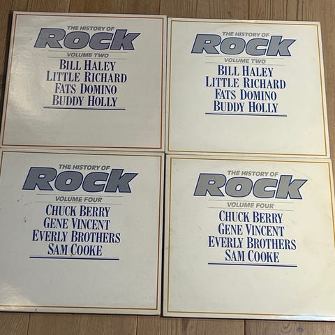 Rock Volume 2, 3, 4, 5, 8, 9, 12, 14. 19 er en samling af vinylplader med forskellige kunstnere og bands, herunder Bill Haley, Little Richard, Elvis Presley, The Platters, Chuck Berry, The Dixie Brothers, og flere. Hver plade indeholder en række klassiske rocknumre fra forskellige perioder med en bred vifte af rockmusik.