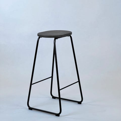 Robuste, stabelbare barstole fra Mater, model Earth Stool. Stel af sortlakeret metal, sæde af kunsstof.