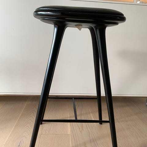 Design Eva Harlou. Fremstillet hos Mater, mærkat herfra. Sædehøjde 74 cm. Fremstår med få brugsspor
