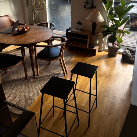 3 stk. Robuste, stabelbare barstole fra Mater, - velegnede til udendørs