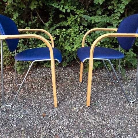 Super fede, retro armstole. Stabelbare med armlæn i bøg og stel i aluminium.