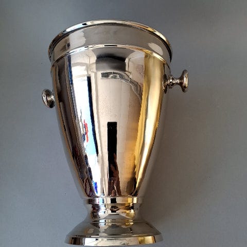 Champagnekøler med 2 håndtag. Den er lavet af stål blankpoleret udenpå, mat indvendig.,Afhentes i:,Røde Kors Skanderborg (745),Bemærk at mail, chat og beskeder ikke besvares, og varen skal købes på knappen "Gå til varen"