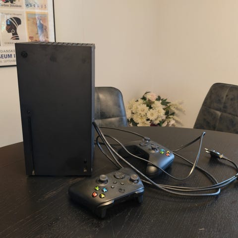 Sælger min Xbox Series x med Elden ring, der følger hdmi og strøm stik med samt 1 controller og lade stik til controller, jeg har også original kasse til xboxen, den er købt sidste år i sep 2024.